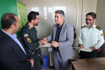 دیدار سرپرست شبکه بهداشت و درمان مهاباد و رئیس دانشکده علوم پزشکی مهاباد با نیروهای انتظامی بیمارستان و تقدیر از خدمات آنان