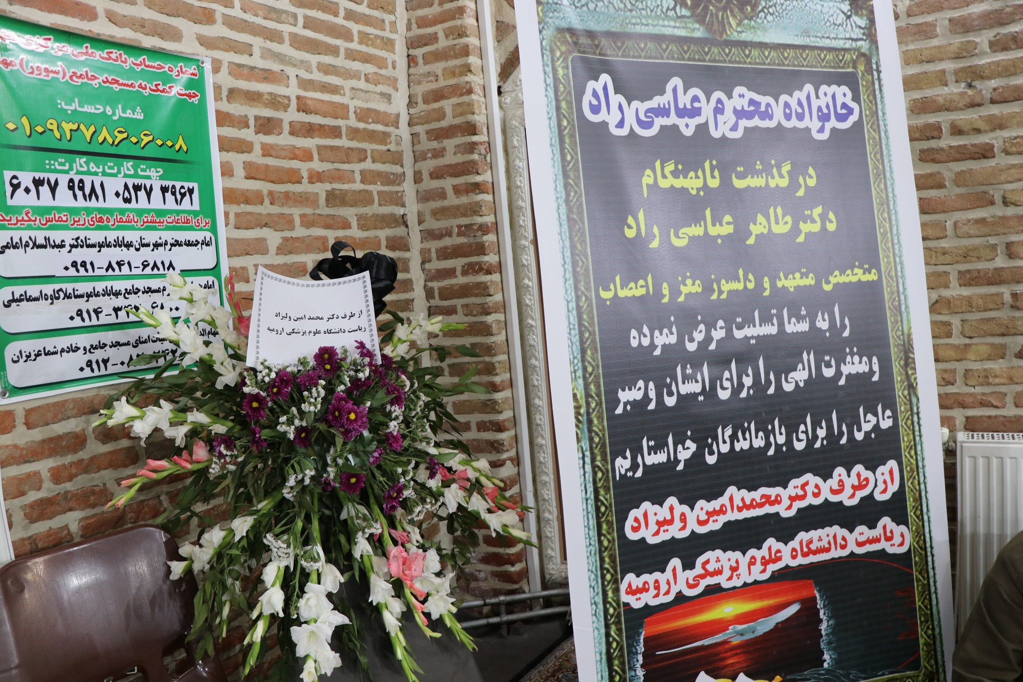 قرائت پیام تسلیت دکتر محمد امین ولی زاد رئیس دانشگاه علوم پزشکی آذربایجان غربی در پی درگذشت زنده یاد دکتر محمد طاهر عباسی راد توسط دکتر علی افشانی مدیر روابط عمومی دانشگاه علوم پزشکی استان در مراسم ختم این پزشک گرانقدر