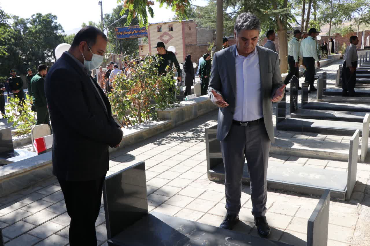 به مناسبت گرامیداشت هفته دفاع مقدس مزار شهیدان انقلاب اسلامی و دفاع مقدس روز پنج شنبه ۳ مهر سال جاری با حضور جمعی از خانواده معظم شهدا، جانبازان، ایثارگران، مسوولان و اقشار مختلف مردم این شهرستان در فضایی معنوی غبارروبی، عطرافشانی و گلباران گردید.
